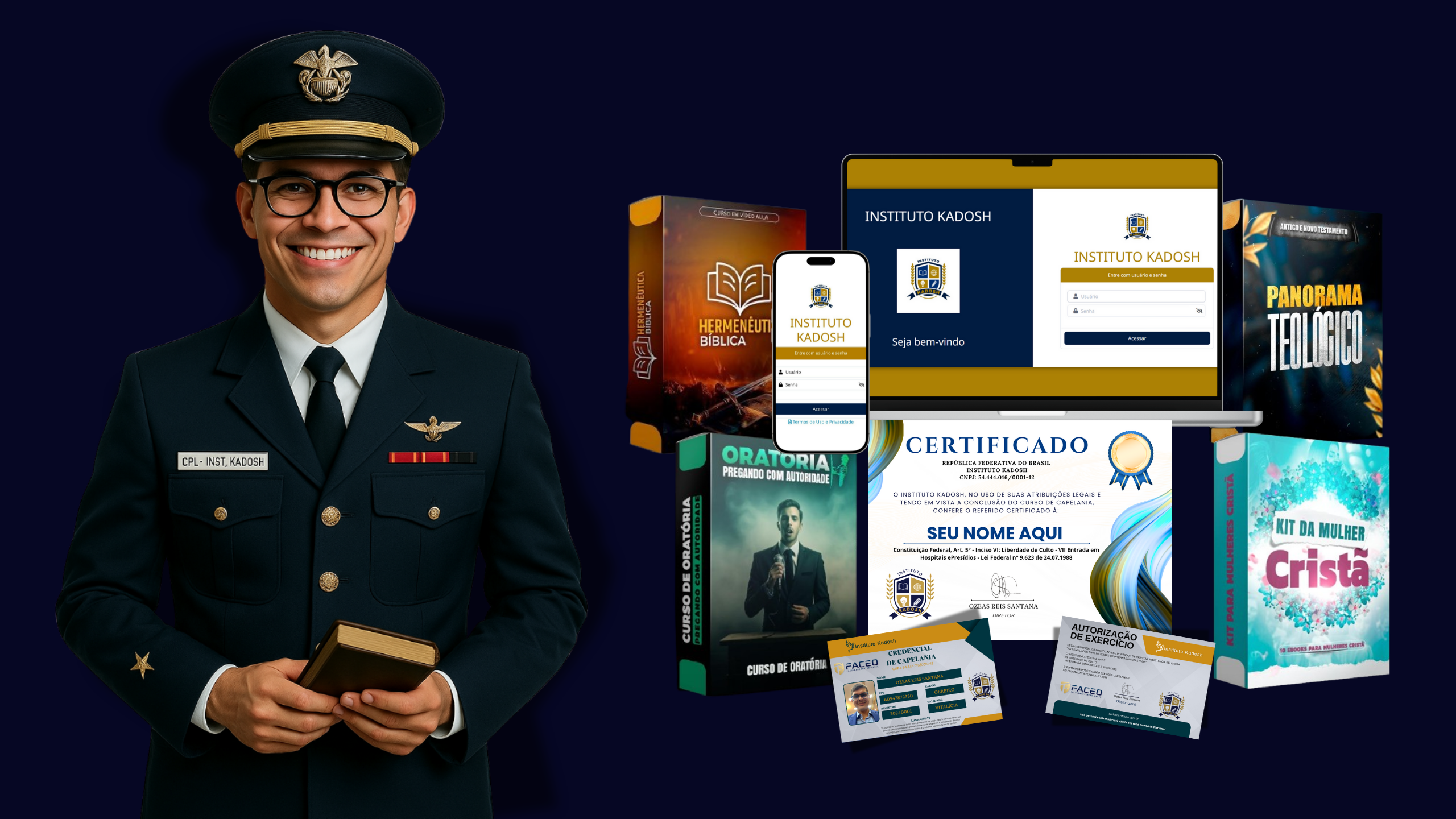 Com a graça de Deus, hoje tenho a honra de servir como diretor do Instituto Kadosh, um projeto que nasceu da profunda necessidade de capacitar cristãos para missões de grande relevância. Nosso propósito é claro: oferecer cursos que preparem homens e mulheres de fé para servir com excelência — em especial através do curso de Capelania.